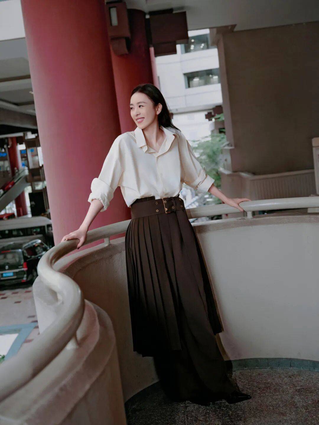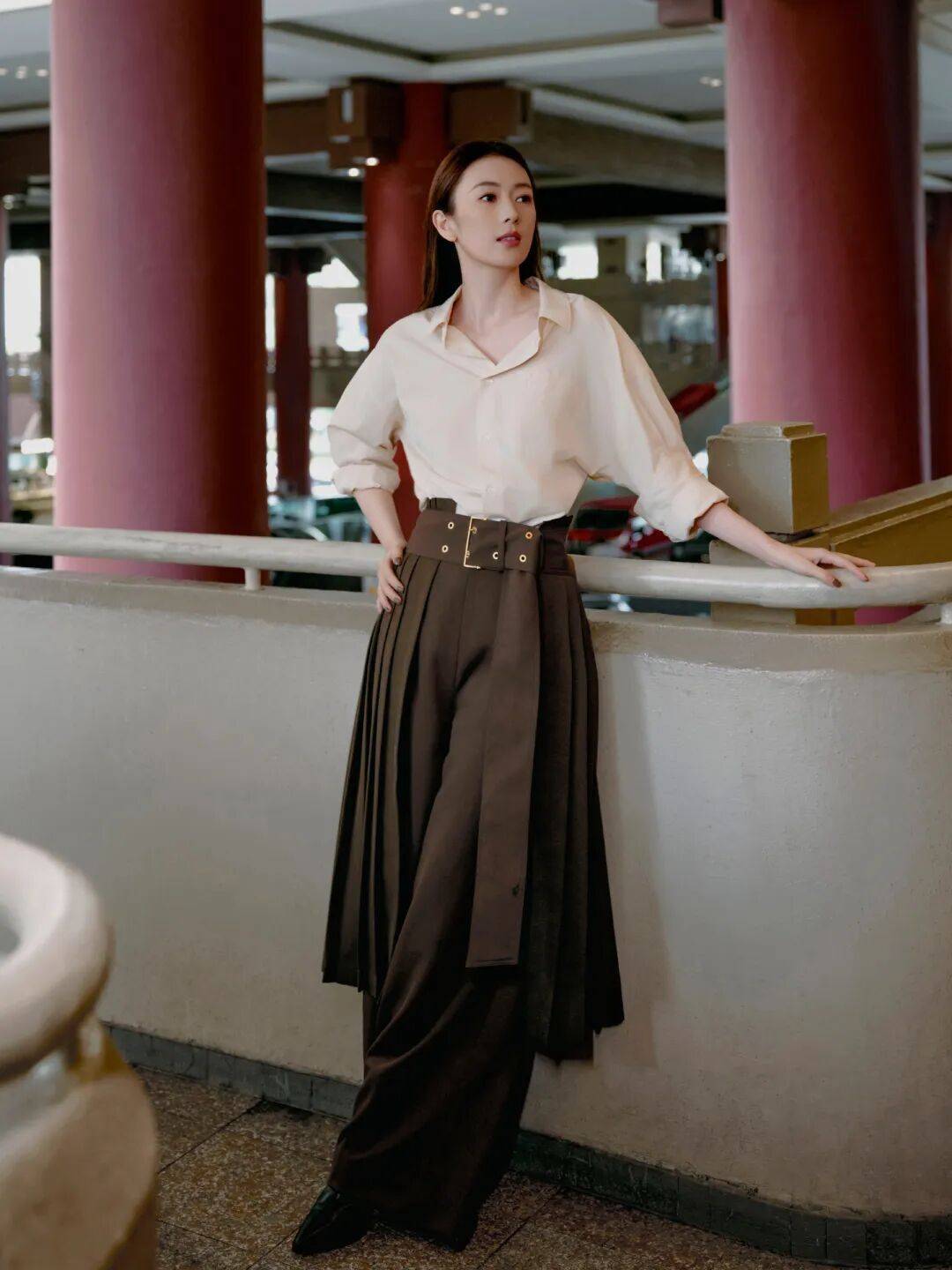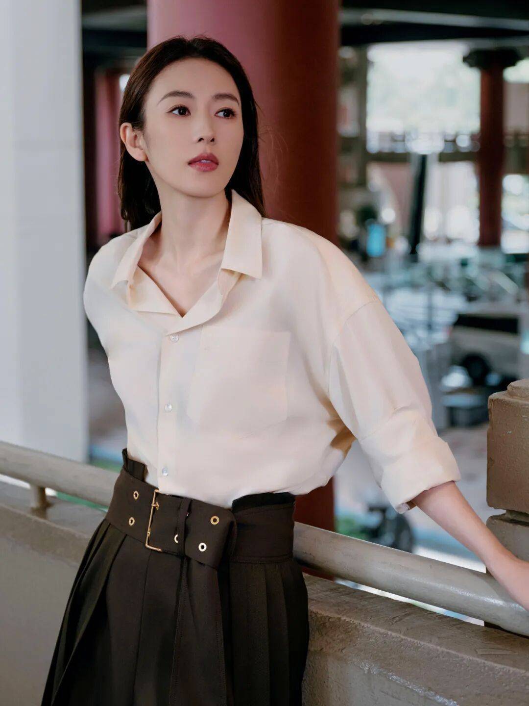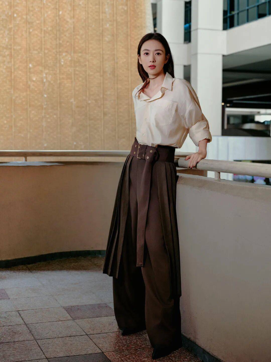 淡雅简约的衬衣,设计感十足的半裙叠穿长裤,在摩登都市中演绎大气从容之姿,光影为幕,优雅为航,自在成章。