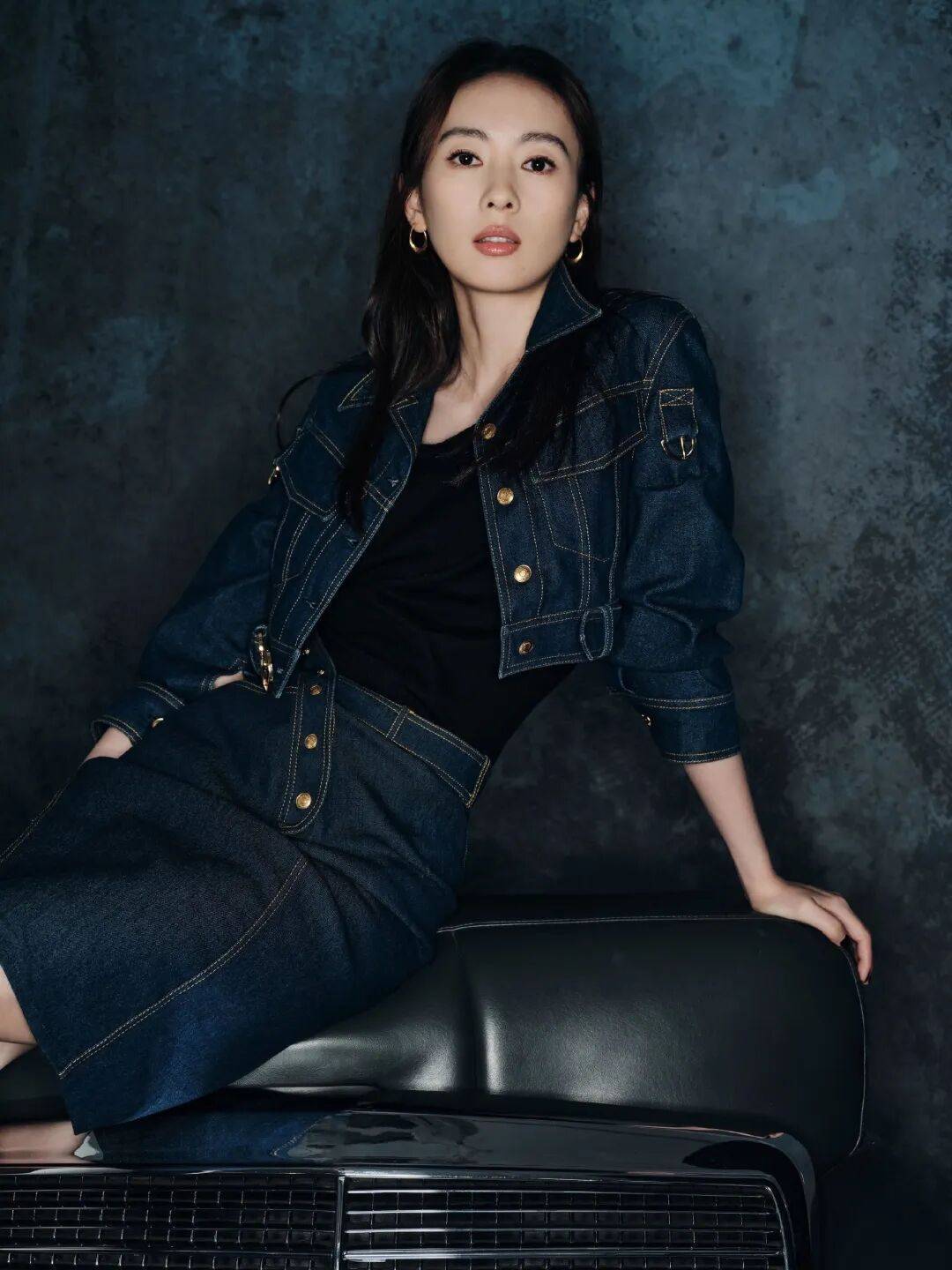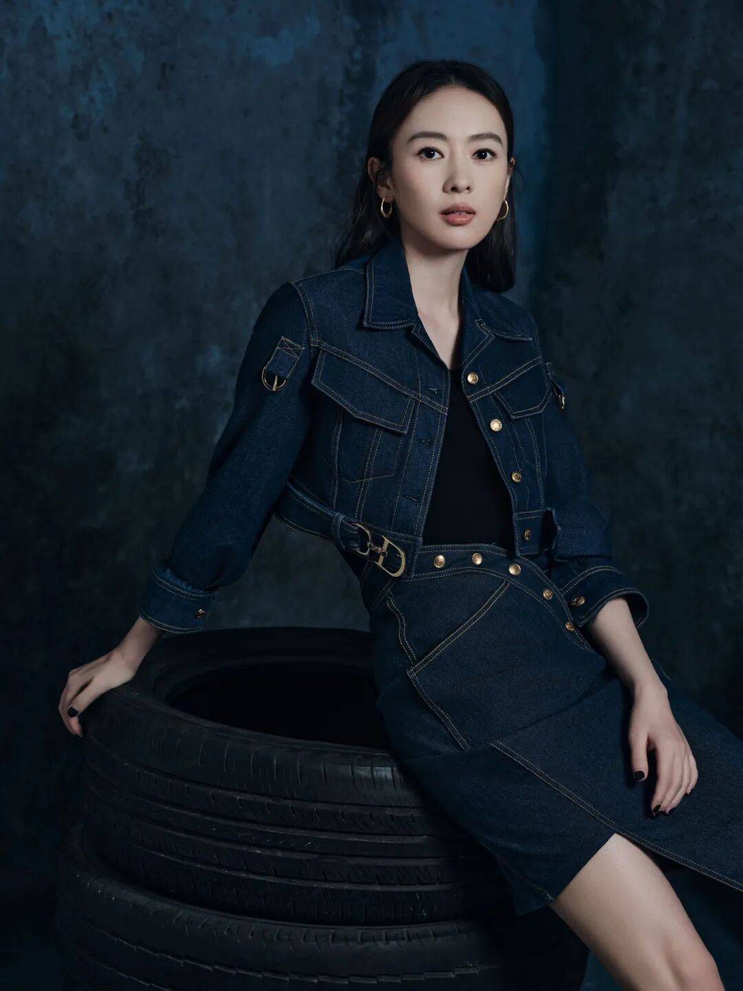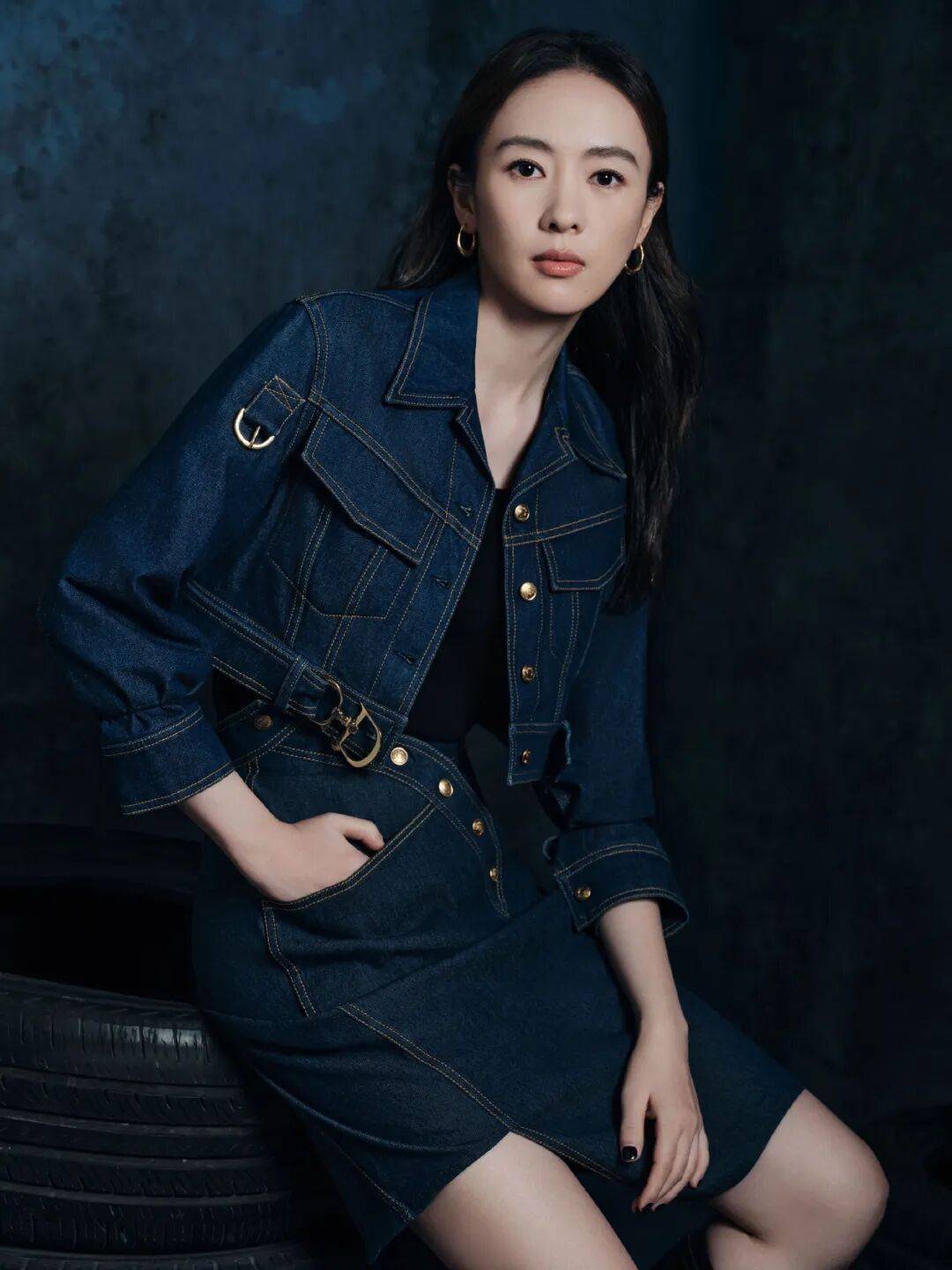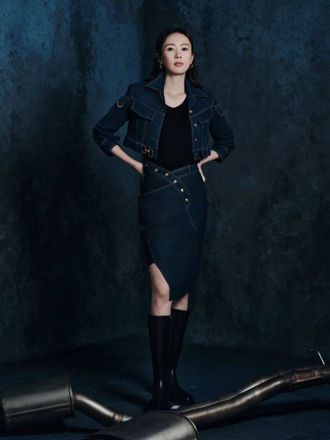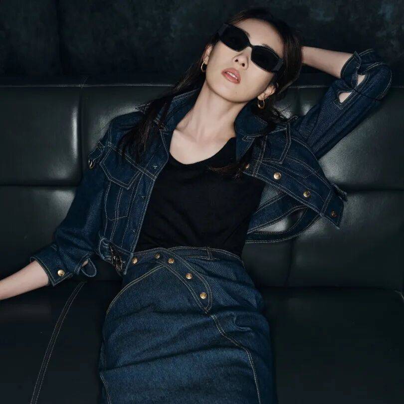 引擎呼啸极速狂飙,一袭深蓝色牛仔套装,别致剪裁展现不凡品位,于机械轰鸣中释放随性魅力。